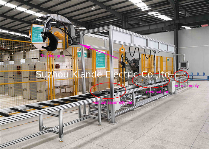 Автоматическая станция реверсирования: Когда шинопровод приедет в станцию реверсирования, оператор зафиксирует шинопровод струбциной и начало заклепывая на одной стороне. После одной стороны делает, вращатели обратит 180 градусов для заклепывать другой стороны.